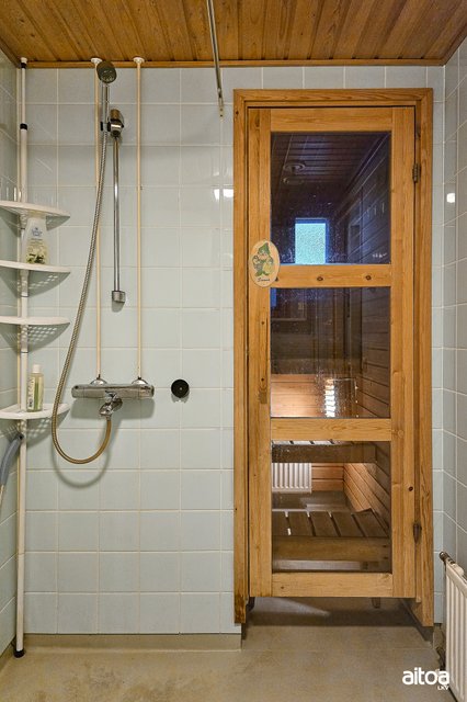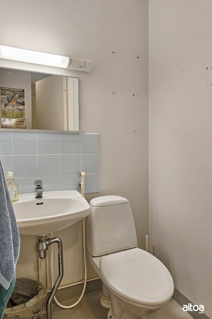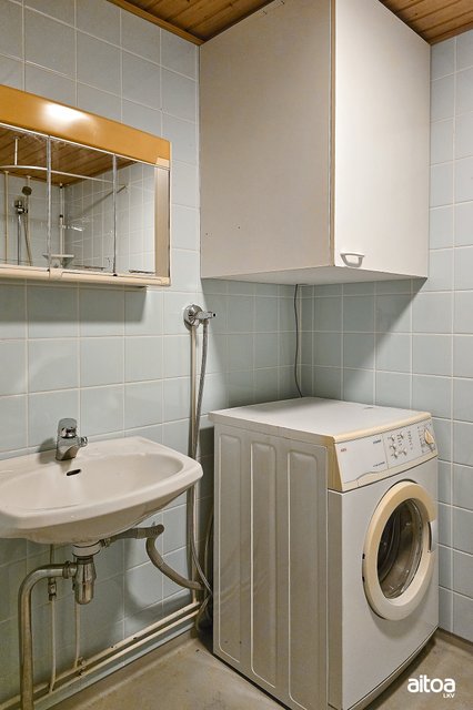 - Suihku, pesukoneliitäntä, peilikaappi, ja allaskaappi