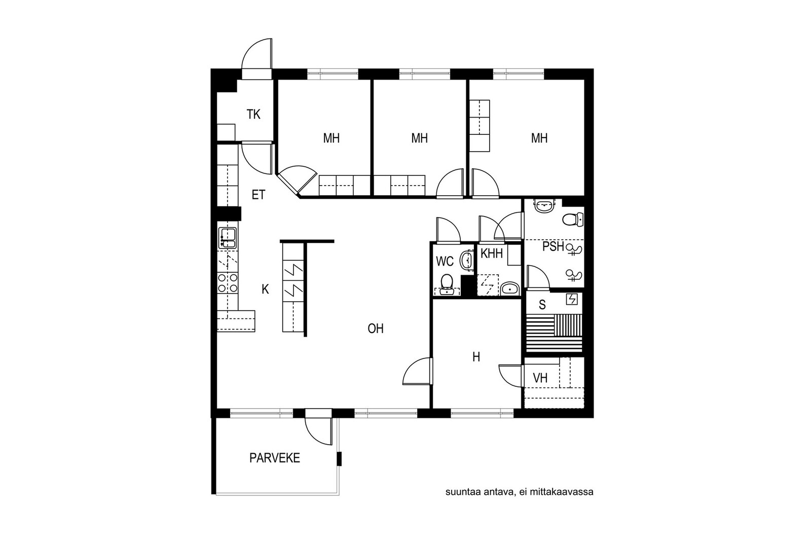 Tässä kodissa on neljä makuuhuonetta, kaksi wc:tä, erillinen kodinhoitotila, toimiva keittiö sekä oma parveke. Pohjaratkaisu on käytännöllinen ja sopii loistavasti isommankin perheen tarpeisiin.
