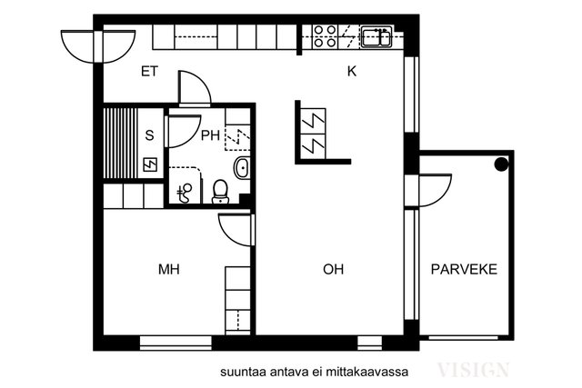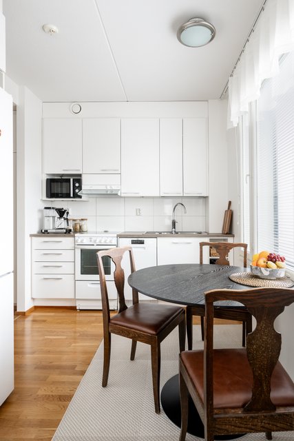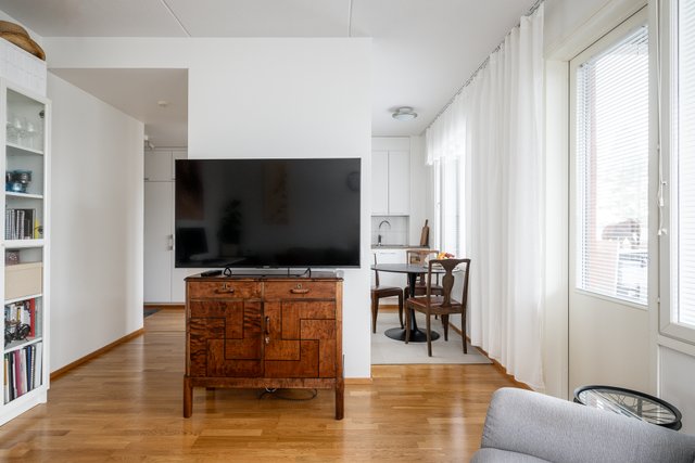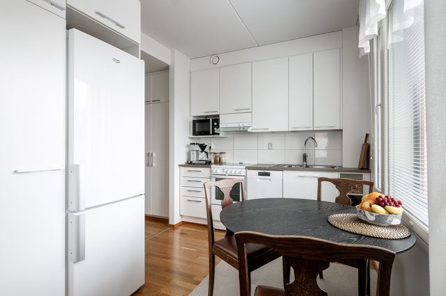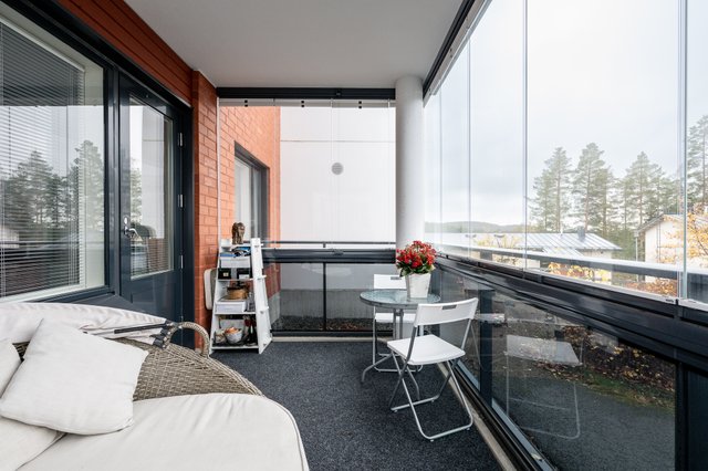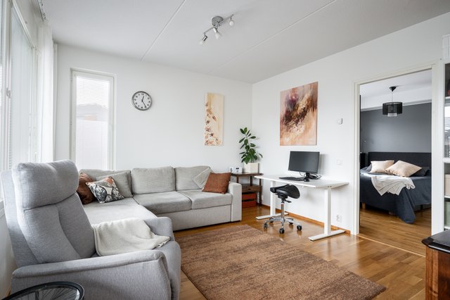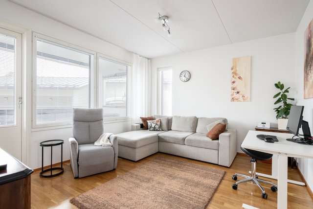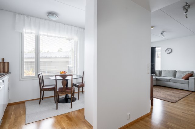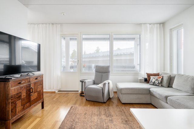 Asunnossa on tilava olohuone, josta on käynti lasitetulle parvekkeelle – täydellinen paikka nauttia aamukahvista tai rentoutua päivän päätteeksi. Keittiössä on kaikki tarvittavat varusteet, kuten jääkaappipakastin, keraaminen liesi ja astianpesukone. Parketti-lattiat tuovat lämpöä ja tyylikkyyttä oleskelutiloihin. Kaikissa tiloissa vesikiertoinen lattialämmitys.