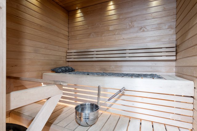 Kylpyhuoneessa on pesukoneliitäntä ja oma sauna kruunaa arjen luksuksen. Taloyhtiö tarjoaa myös hyvät säilytystilat, kuten häkkivaraston ja urheiluvälinevaraston.