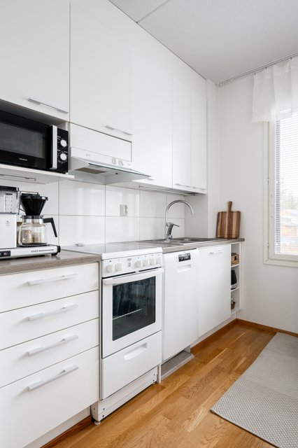 - Jääkaappipakastin, liesi, liesituuletin, ja astianpesukone