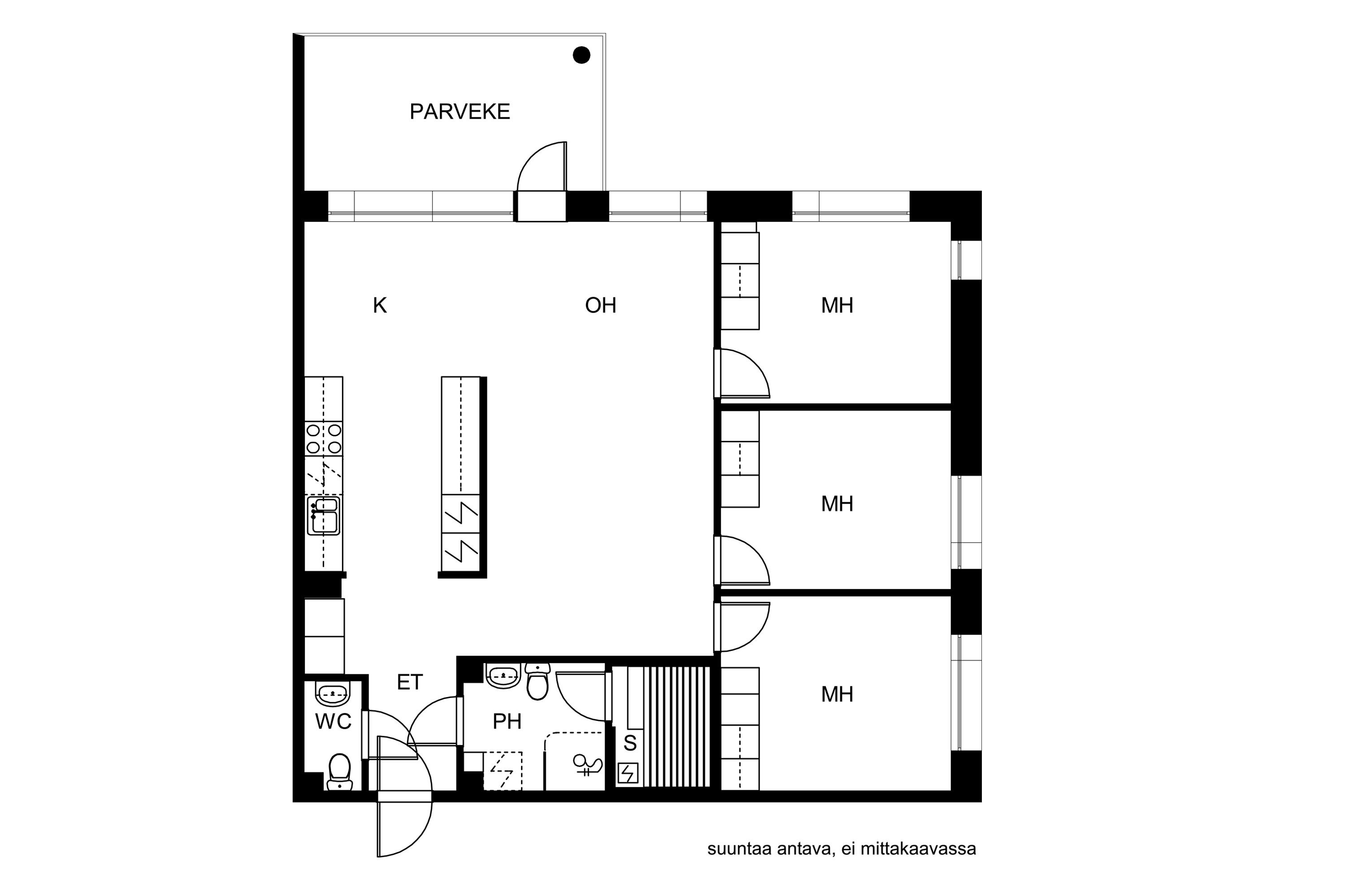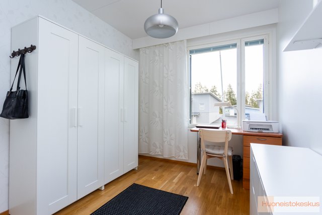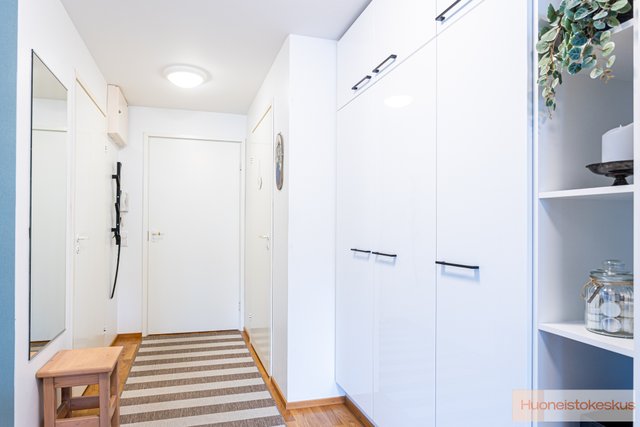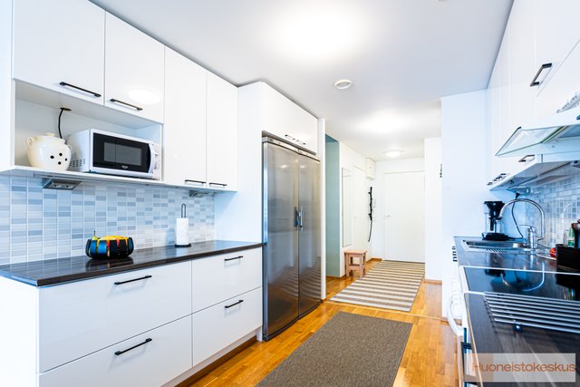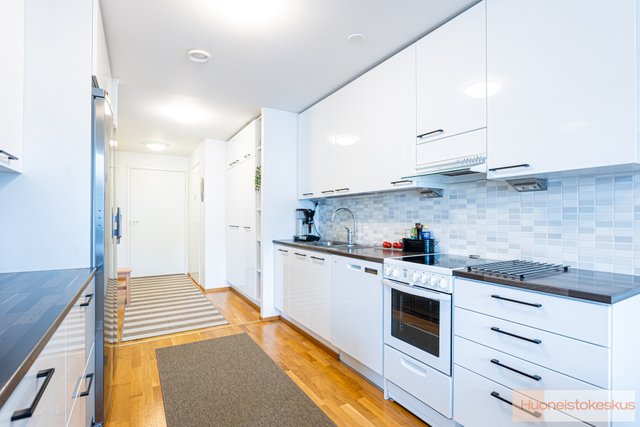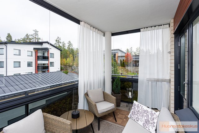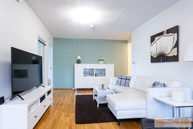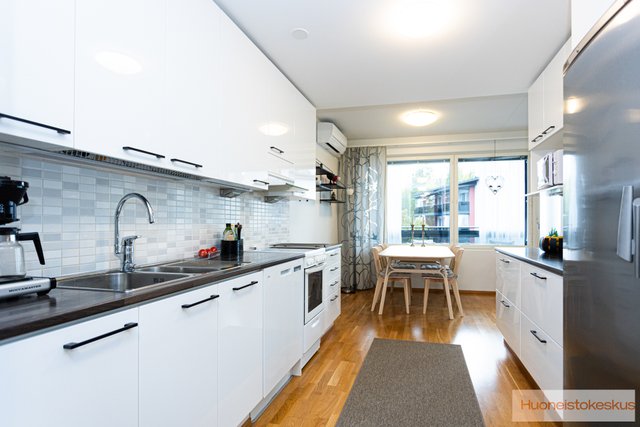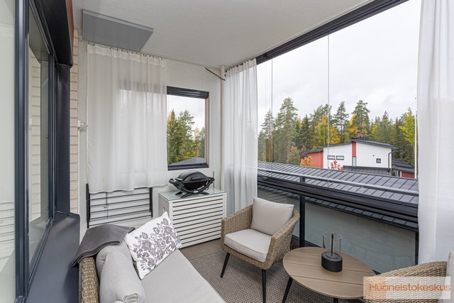 Asunnossa on kolme makuuhuonetta, olohuone, keittiö, kylpyhuone, sauna ja lasitettu parveke, josta avautuvat näkymät luontoon. Keittiö on varustettu nykyaikaisilla kodinkoneilla, ja olohuoneessa sekä makuuhuoneissa on kaunis parkettilattia. Lattialämmitys tuo lisämukavuutta arkeen.