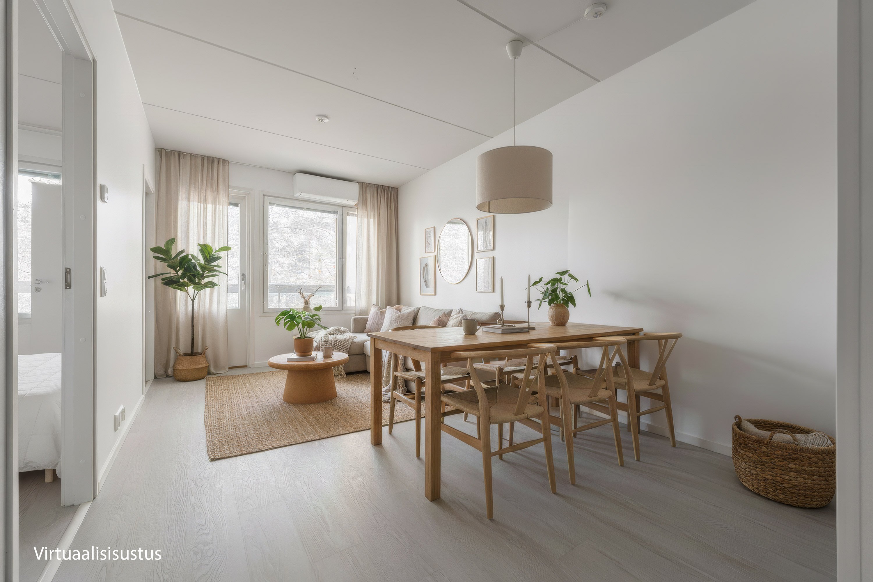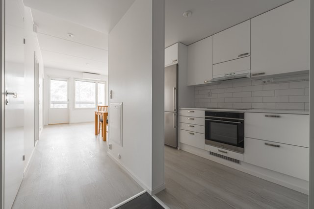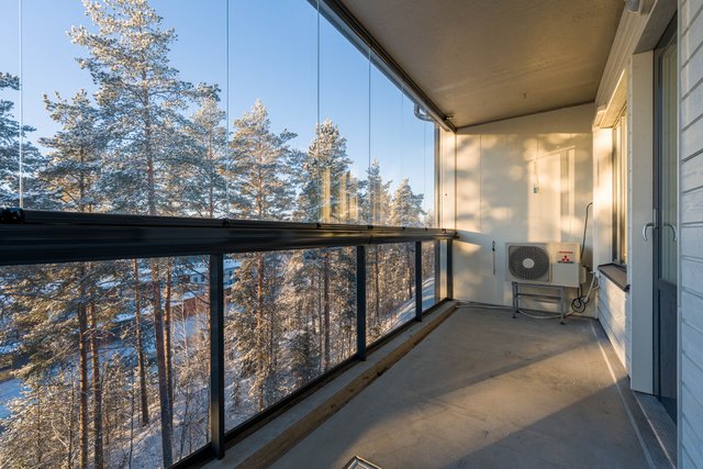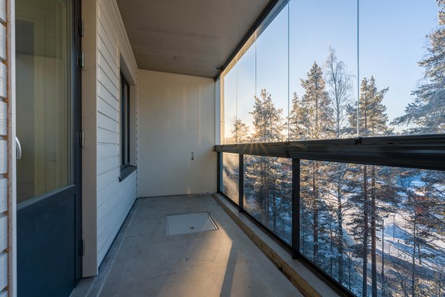 Asunnossa on avara ja valoisa olohuone, josta on käynti lasitetulle parvekkeelle – täydellinen paikka nauttia aamukahvista tai rentoutua päivän päätteeksi. Keittiö on varustettu nykyaikaisilla kodinkoneilla, kuten induktioliesi ja astianpesukone, mikä tekee ruoanlaitosta vaivatonta. Kylpyhuoneessa on mukavuuksia, kuten lattialämmitys ja pesukoneliitäntä, ja oma sauna tuo luksusta arkeen.