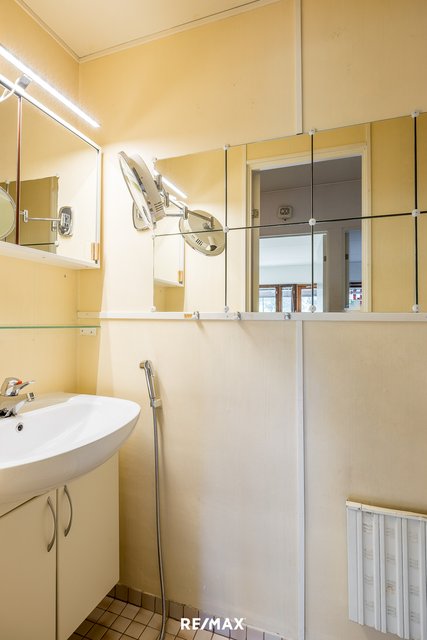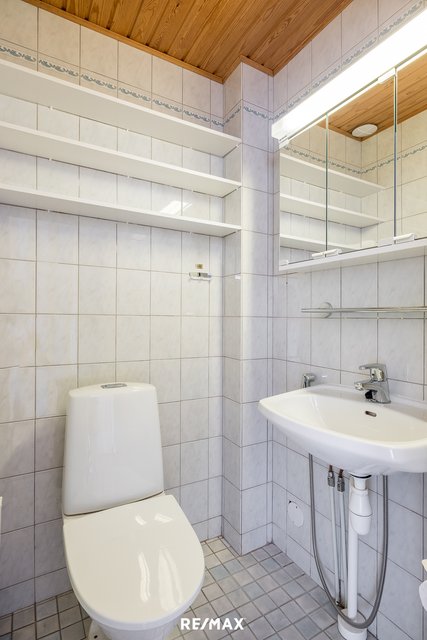 - WC-istuin, kylpyamme, suihku, peilikaappi, peili, pesukoneliitäntä, ja lattialämmitys