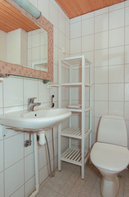 - Yk: wc-istuin, bidee, suihku, lavuaari, peili, lattia laattaa ja seinät kaakelia, lattialämmitys. Ak. wc-istuin, bidee, lavuaari