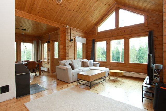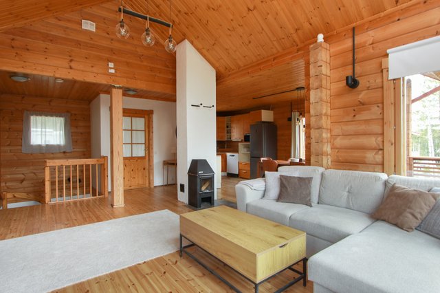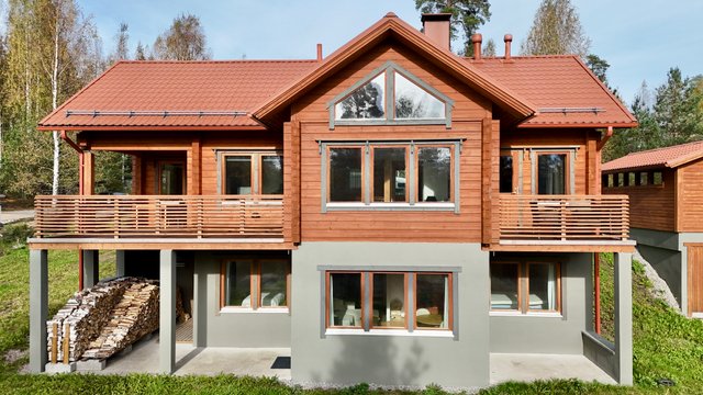 Ihastuttava hirsitalo rinnetontilla – tilaa ja tunnelmaa kahdessa kerroksessa