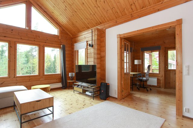 Hausjärven Hikiällä hurmaava hirsitalo tarjoaa viihtyisää asumista kahdessa tasossa. Sisääntulokerroksessa avara olohuone suurine ikkunoineen tulvii luonnonvaloa, ja sen yhteydessä on ruokailutila sekä kaunis keittiö. Lisäksi tässä kerroksessa on makuuhuone, pariovellinen huone, jota voi käyttää työ- tai vierashuoneena, sekä wc/pesutila.