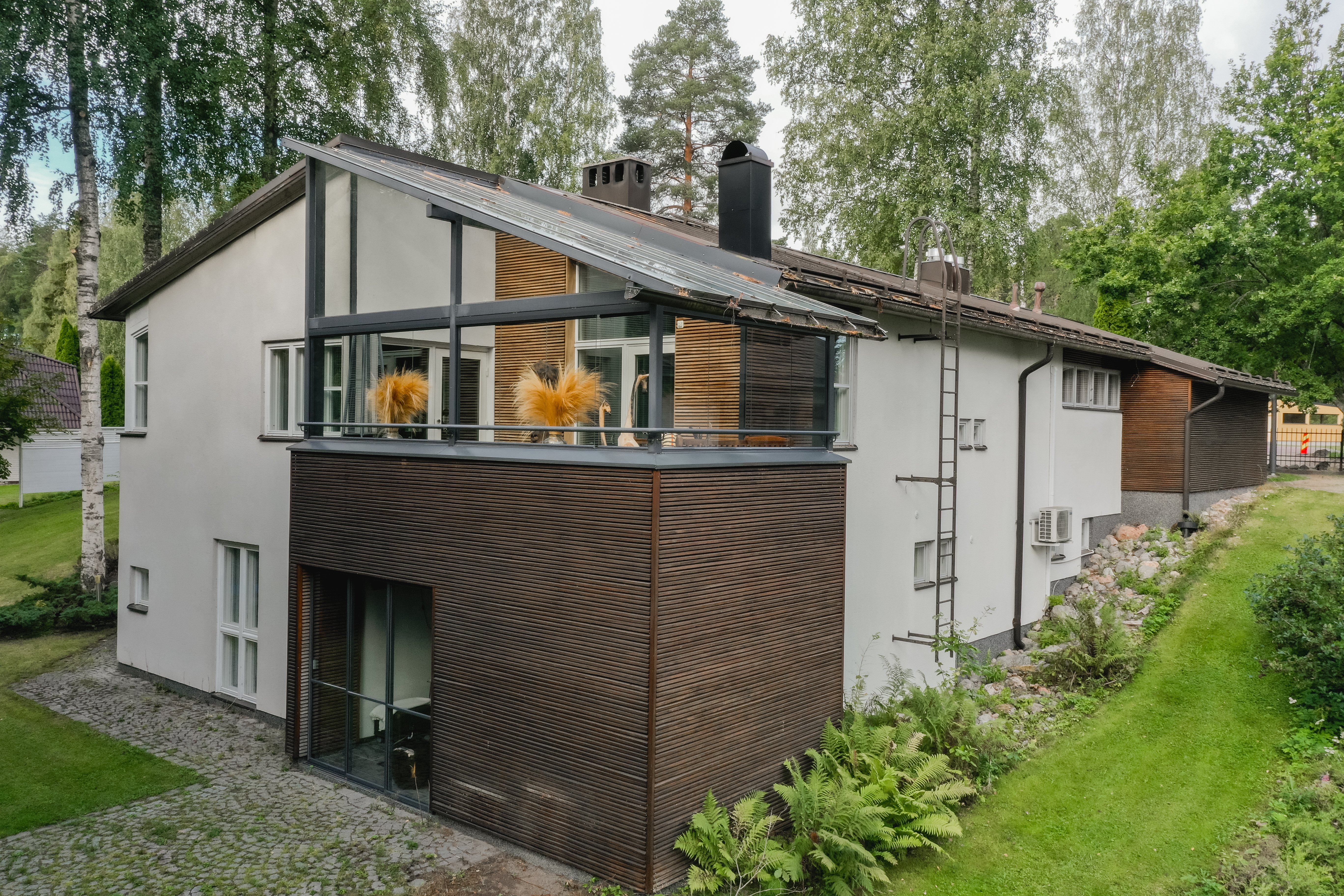 Tämän tilavan ja monipuolisen, rauhallisella Jalkarannan asuinalueella sijaitsevan omakotitalon on suunnitellut tunnettu arkkitehti Reijo Jallinoja.