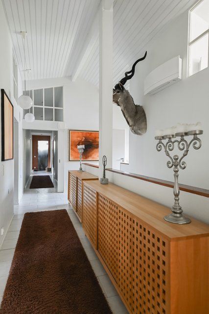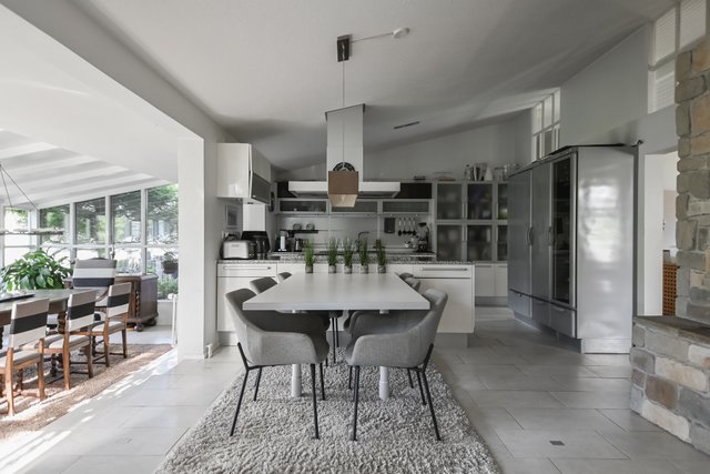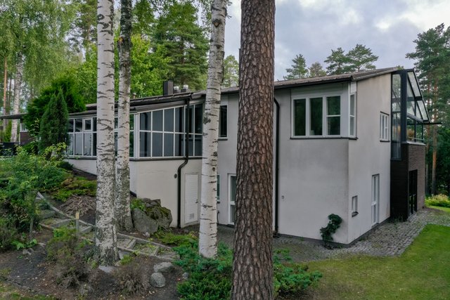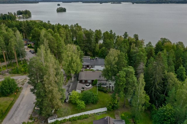 Keittiö on varustettu ranskalaisella Mobalpa-kalusteilla, jossa on kivitasot ja monipuoliset Festivo-kylmäkalusteet. Keittiösaareke ja kaasuliesi tekevät ruoanlaitosta nautinnollista. Ruokailu onnistuu hienossa katetussa ruokailutilassa, josta ikkunat avautuvat sisäpihalle. Monipuoliset asuintilat ovat kahdessa kerroksessa. Yläkerrassa on neljä makuuhuonetta. Päämakuuhuone sijaitsee erillään omassa rauhassaan ja sielä on kulku lasitetulle isolle parvekkeelle, josta avautuu upea näkymä Vesijärvelle. Alakerrassa on mm. iso työhuone, makuuhuone, kelobaari, oleskelutilaa ja saunaosasto porealtaineen.