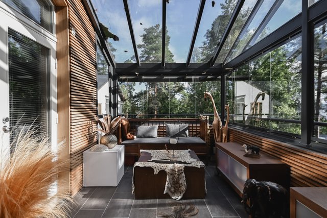 Saunomisen ystäville talossa on sähkölämmitteinen sauna sekä pihalla tilava savusauna, omalla terassialueella. Savusaunan yläpuolella olevalla toisella terassilla voit rentoutua lämmitettävässä porealtaassa. Talon sisäsaunalta on kulku katetulle terassille jossa on poreallas katseilta suojassa.