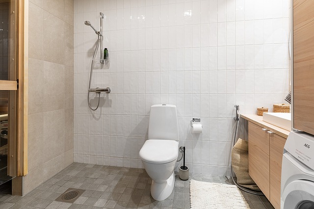 - WC-istuin, suihku, peili, pesukoneliitäntä, lattialämmitys, ja kiinteät valaisimet
