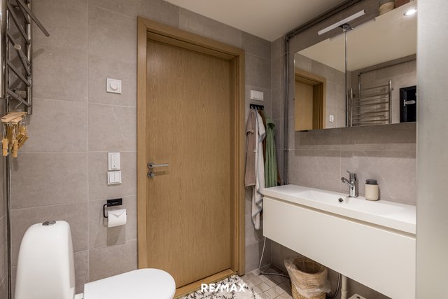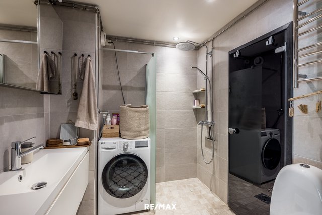 - WC-istuin, suihku, suihkuseinä, pesukoneliitäntä, lattialämmitys, peilikaappi, allaskaappi, pesuallas, ja pyyhepatteri