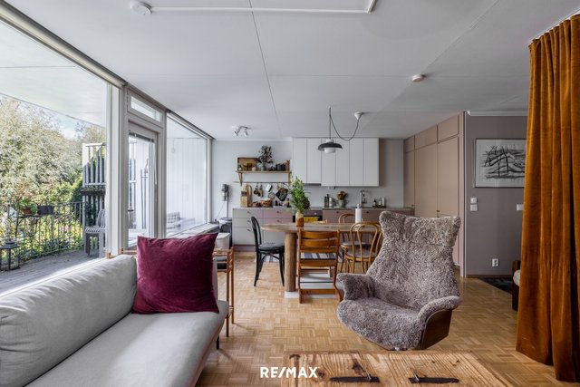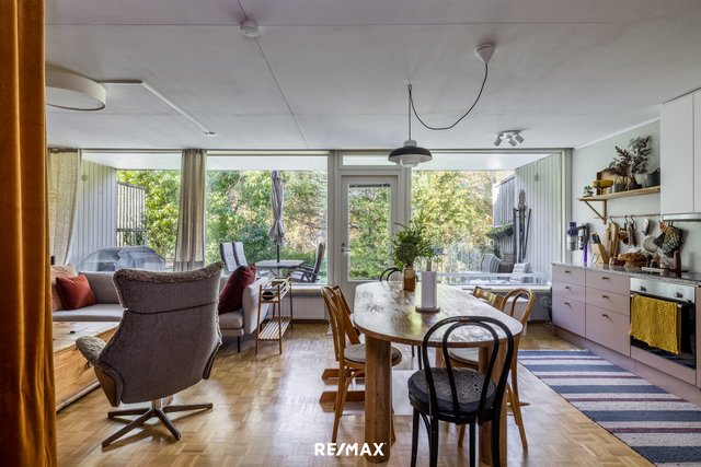 Arkkitehtipariskunta Raili ja Reima Pietilän suunnittelema, viehättävä rivitalo-asunto Kannelmäessä etsii uusia asukkaitaan.