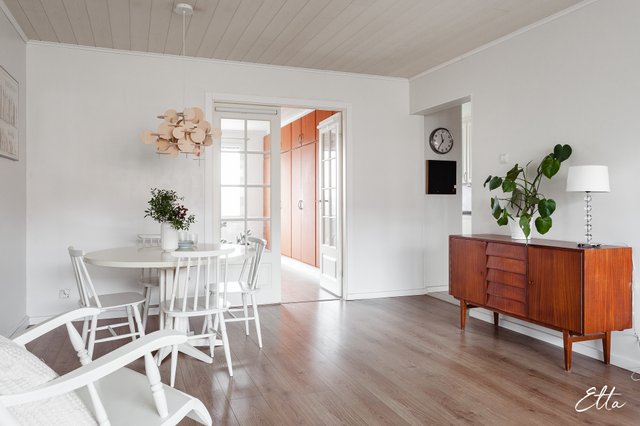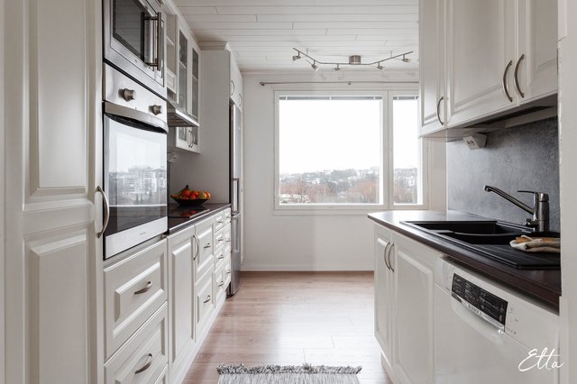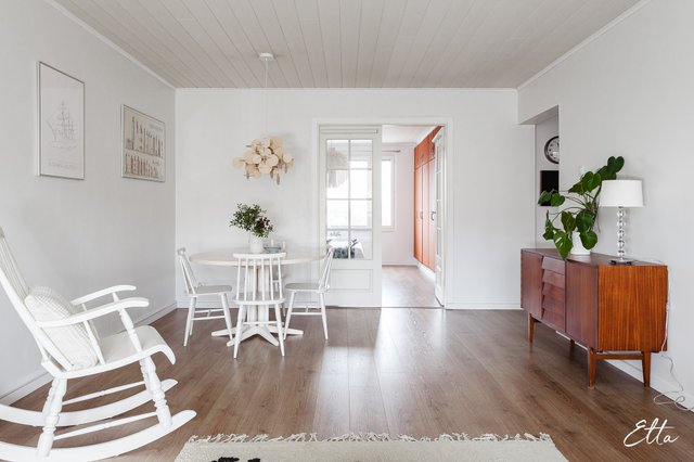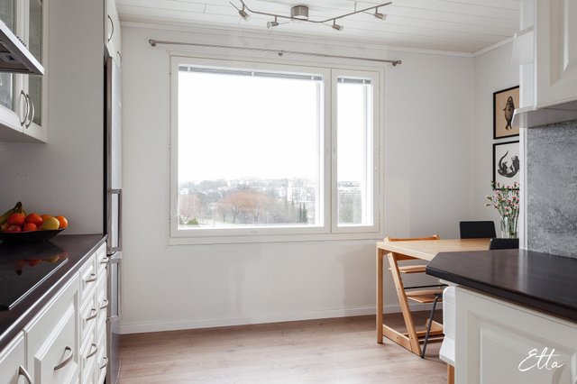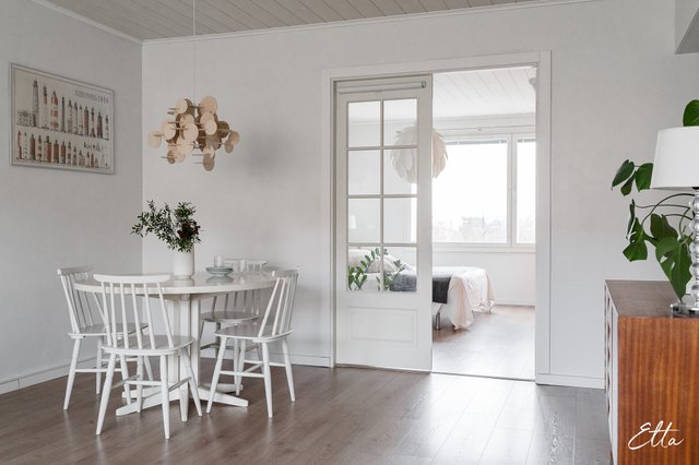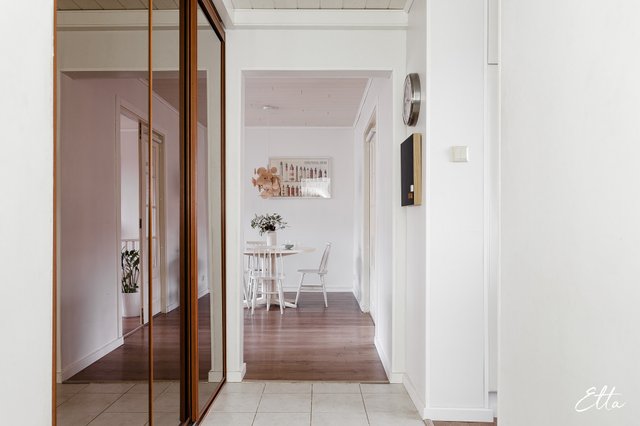 Asunto on läpitalon koti, jossa luonnonvalo tulvii sisään jokaiseen huoneeseen. Tilava olohuone tarjoaa runsaasti mahdollisuuksia sisustamiseen ja siihen onkin helppo yhdistää mm. ruokailutila. Lasiovien takaa avautuu suuri makuuhuone, jossa koko seinän levyinen säilytysratkaisu tuo käytännöllisyyttä arkeen. Erilliseen keittiöön mahtuu hyvin arkiruokapöytä ja lasitettu parveke tarjoaa viihtyisän lisätilan ympäri vuoden. Suuret huonealat mahdollistavat myös luomaan oman etätyöpisteen haluamaasi tilaan. Tämä 62 m²:n koti Kanslerintie 8 B:ssä on harmoninen yhdistelmä klassista talotyyliä ja nykyaikaista asumista.