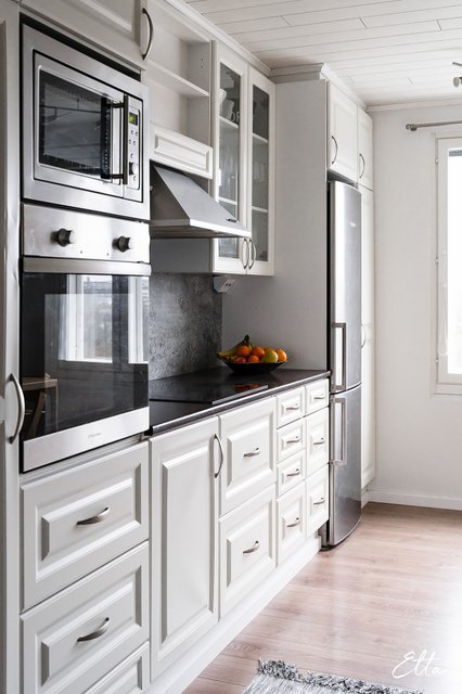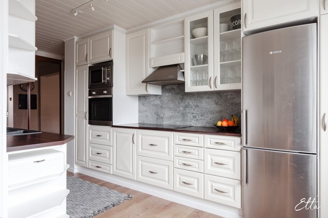 - Jääkaappipakastin, erillisuuni, liesi, liesituuletin, astianpesukone, ja mikroaaltouuni