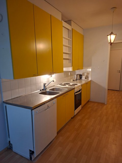 Kodin keittiö on varustettu modernilla amerikkalaisella jääkaappipakastimella, astianpesukoneella ja sähköliedellä. Vaatehuone sekä lisäsäilytystilaa tarjoaa huoneistokohtainen häkkivarasto.