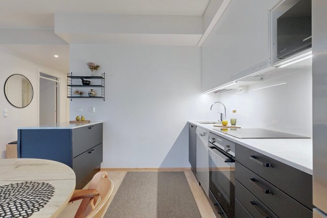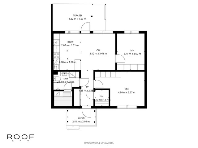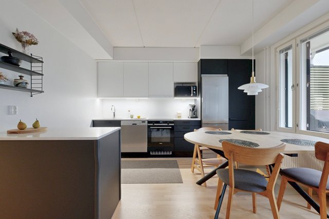 - VARUSTUS: Induktioliesi, Erillisuuni, Liesikupu, Hana, Kaapisto, Allas, Astianpesukone, Jääkaappipakastin. TYÖTASO: Kvartsikivitaso. SEINÄT: Välitila lasi. Maalattu. LATTIA: Parketti.