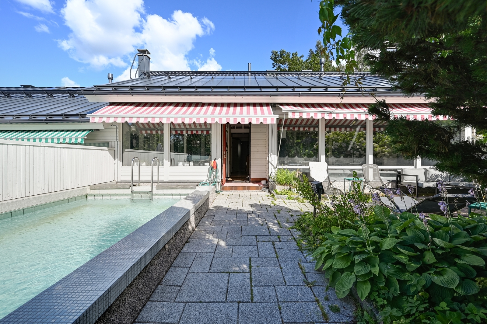 Haaveiletko aurinkoisesta pihasta suojassa naapureiden katseilta? Puistolan parhaalla paikalla vapautuu pian upea rivitalokoti, jonka piha on vertaansa vailla. Uima-allas, runsaat oleskelutilat ja sijainti korkealla mäellä muiden katseilta piilossa, tekevät asumisesta ylellisen mukavaa. Huoneistossa on 130 neliötä ja upea avokeittiö, ruokailutila ja olohuone ovat avointa, yhtenäistä tilaa. Huoneistosta löytyvät myös sauna ja kylpyhuone, wc ja makuuhuone sekä lasitettu patio, jossa voi nauttia elämästä pitkälle syksyyn. Asunnossa on lisäksi käyttöullakko, joka tarjoaa monikäyttöistä lisätilaa. Tämä uniikki pohja tekee asunnosta hyvin monipuolisen ja tiloja pystyy muokkaamaan omien tarpeiden mukaisesti. Pienessä ja mukavassa taloyhtiössä asuminen ja asioista sopiminen on mutkatonta. Puistola on lapsiperheiden suosimaa, vehreää pientaloaluetta, jossa koulut, päiväkodit ja harrastukset ovat lähellä. Varaa oma esittelyaikasi ja tule ihastumaan tähän upeaan kotiin, jossa riittää tilaa isommallekin perheelle!