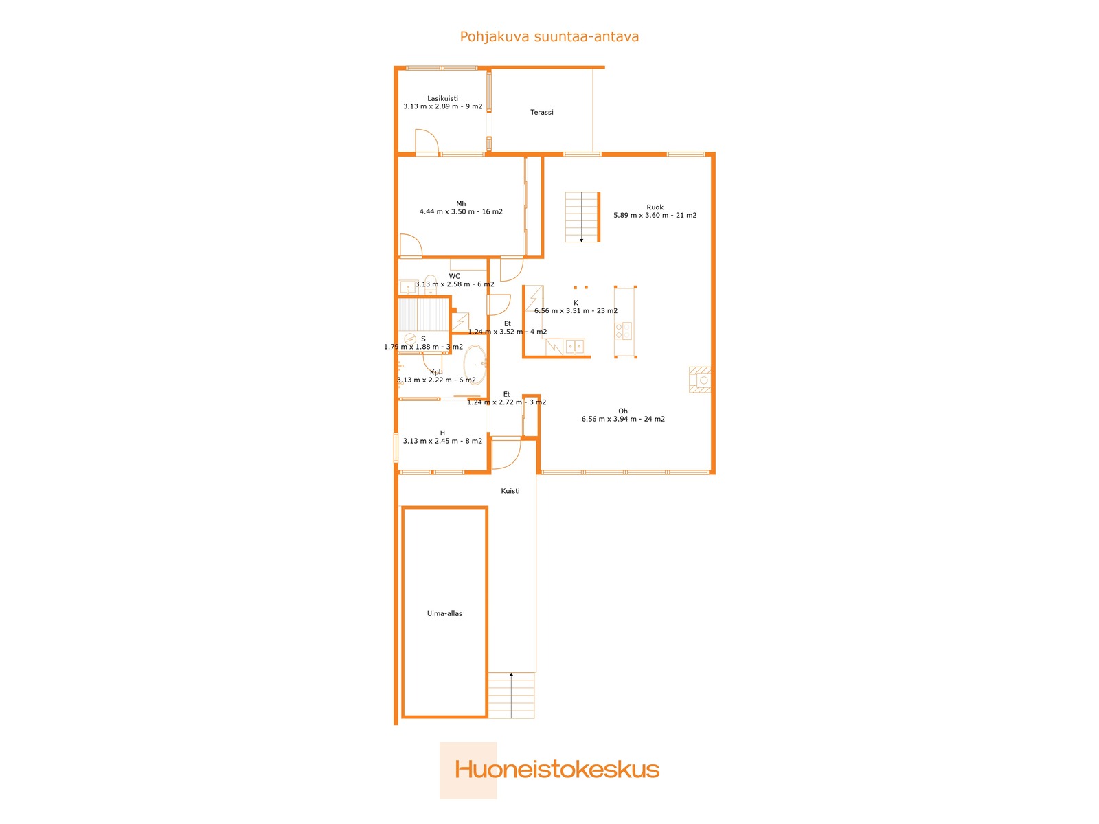 - Pinta-aloja ei ole tarkastusmitattu, joten ne voivat poiketa olennaisestikin ilmoitetuista pinta-aloista. Huoneistoon kuuluu lämmin käyttöullakko, joka on otettu asuinkäyttöön, mutta sitä ei ole virallisesti tähän käyttöön muutettu. Käyttöullakko ei sisälly ilmoitettuun pinta-alaan.