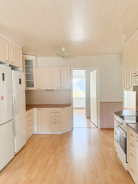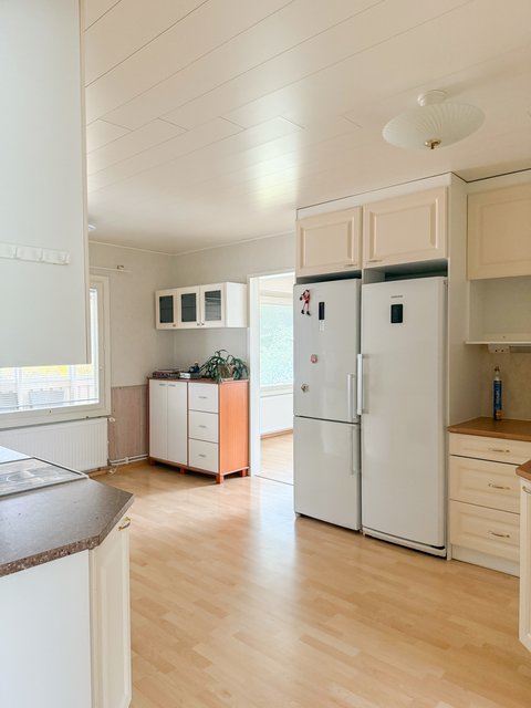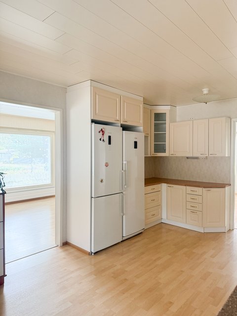 Vuonna 1964 rakennettu yksitasoinen maalämpötalo, omalla tontilla Syväraumassa. Etsitkö kotia kaupungin pohjoispuolelta? Tässä voisi olla perheesi uusi asuinpaikka. Omalla 788m2:n tontilla sijaitsevan talon asuintilat ovat yhdessä tasossa. Ulko-oven edustalla on katettu kuisti. Pohjaratkaisuun kuuluvat: eteinen, josta on kulku kodinhoitohuoneen kautta suihkuun sekä saunaan. Kodinhoitotilassa on pesukoneliitäntä, sekä pieni pöytätaso. Kodissa on mukavan kokoinen keittiö, joka on perusilmeeltään siisti. Keittiöstä on kulku olohuoneeseen, jonka perällä on ennen sijainnut kodin kolmas makuuhuone. Keittiön kautta on myös kulku talon toiseen päätyyn, jossa sijaitsee kaksi makuuhuonetta, erillinen wc, sekä toinen sisäänkäynti. Pihassa on huvimaja, sekä ulkovarasto. Talon yhteydessä on autotalli. Kuntotarkastus tehty 2025. Varaa itsellesi näyttöaika ja tule tutustumaan tähän kotiin paikan päälle.