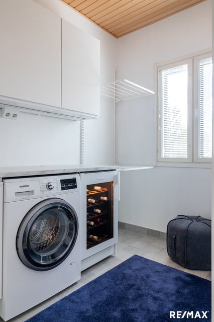 - Pesukoneliitäntä, lattialämmitys, pesuallas, lattiakaivo, viinikaappi: festivo, ja keskuspölynimuri