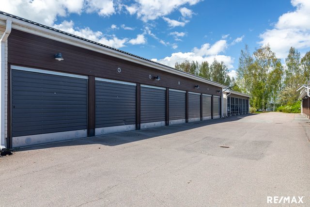 - Ulkovälinekatos, talovarasto, jätekatos, lämmönjakohuone, sähköpääkeskushuone, väestönsuoja/irtaimistovarasto, irtaimistovarasto ja 8 autopaikkaa