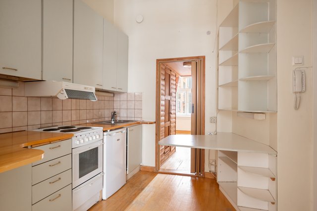 Asunnon korkeat huoneet luovat ilmavuutta, ja tilava olohuone sekä avokeittiö tarjoavat mukavat puitteet niin arkeen kuin juhlaan. Makuuhuoneessa on parvi, joka tuo lisää tilaa ja mahdollisuuksia sisustamiseen. Kylpyhuone on modernisoitu LVIS-saneerauksen yhteydessä, ja siellä on mukavuuksia kuten lattialämmitys ja pesukoneliitäntä, erillinen wc. Asunto on ollut pitkän tovin vuokrakäytössä ja sen voi uusi omistaja remontoida mieltymyksiensä mukaan.