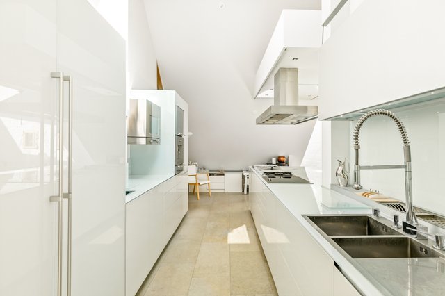 - Upea Valcucinen keittiö, jossa valkoiset , helppohoitoiset lasiovet. Kaikki kodinkoneet Gaggenau.
