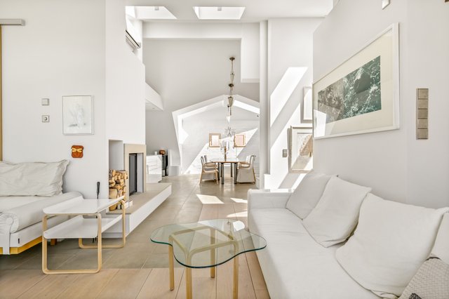 This exceptional loft apartment is located in the prestigious Ullanlinna district on Kapteeninkatu, just a stone’s throw from the sea. Designed by architect Pekka Helin and completed in 2010, this home offers a unique combination of historical charm and modern comfort.