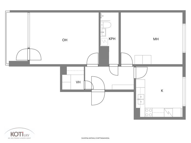 - Olohuoneesta ja parvekkeelta n. kaakkoon, makuuhuoneesta ja keittiöstä n. luoteeseen