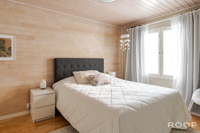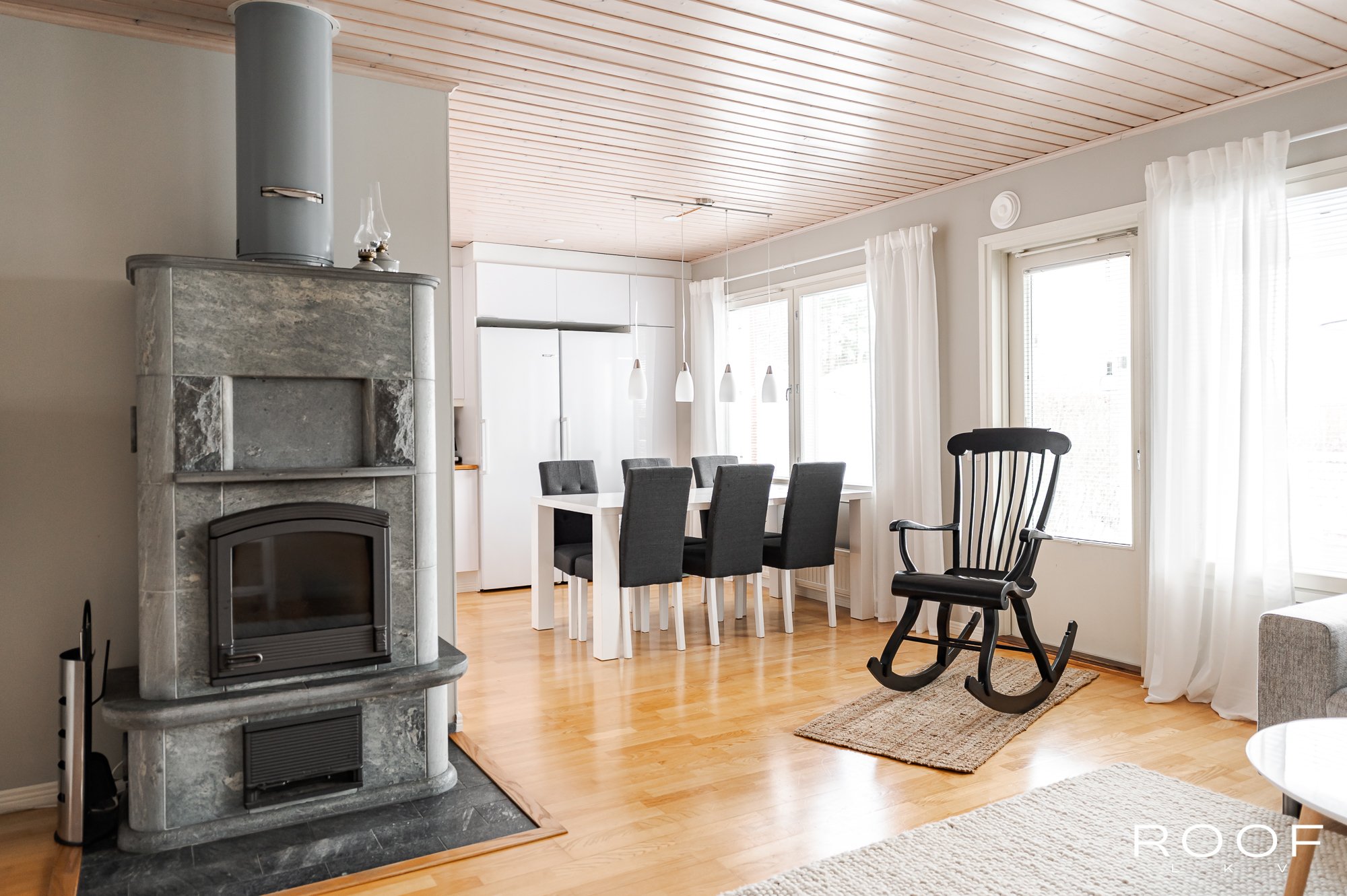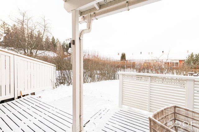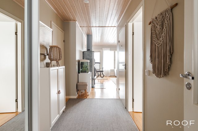 Tämä kaunis koti on halutusti 1-tasossa. Sisääntultaessa makuuhuoneet sijaitsevat molemmin puolin eteistä. Erillinen wc, kodinhoitohuone sekä pesutilat ja sauna löytyvät matkalla olohuoneeseen. Tilava olohuone yhdistyy luontevasti keittiön kanssa. Keittiössä on runsaasti lasku- ja kaappitilaa ja sinne sopii myös vaivatta isompikin ruokapöytä. Isot kylmälaitteet helpottavat arkea. Olohuoneesta on käynti katetulle ja suojaiselle terassille sekä takapihalle, jossa on kivasti tilaa ja mahdollisuus myös halutessaan upottaa sormensa multaan.