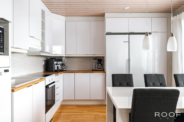 - Jääkaappi, erillinen pakastin, liesituuletin, liesi, ja astianpesukone