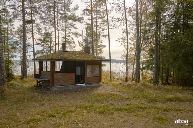 - Rantasauna, päämökki, grillikota ja majoitusrakennus. Majoitusmahdollisuus jopa 13 hlölle.