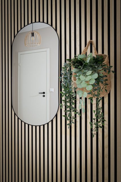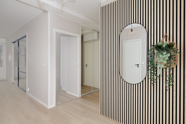 En ljus vinylplankgolv i vacker träton löper genom hela bostaden och skapar ett harmoniskt och ljust intryck. Badrummet är helt nyrenoverat. Det panelklädda taket, det nya tvättställsskåpet, de svarta blandarna och duscharna samt de glasade duschdörrarna fulländar rummets fräscha uttryck.