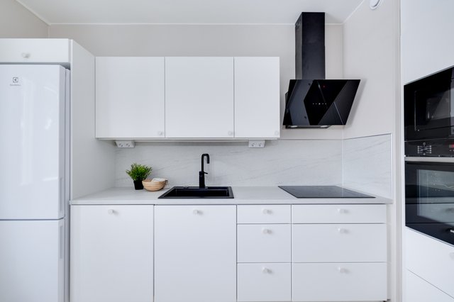- Jääkaappipakastin, erillisuuni, liesituuletin (Aktiivihiilisuodattimella oleva malli), astianpesukone (integroitu), ja mikroaaltouuni (intergoitu)
