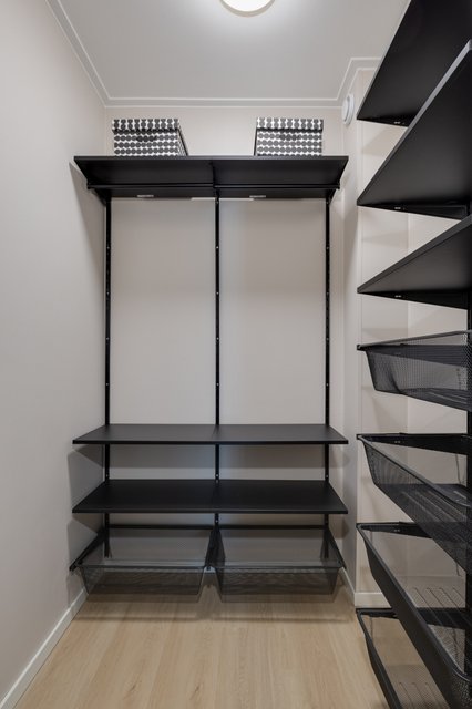 - Tilava eteinen, jonka yhteydessä erittäin tarpeellinen vaatehuone uusine hyllyineen.