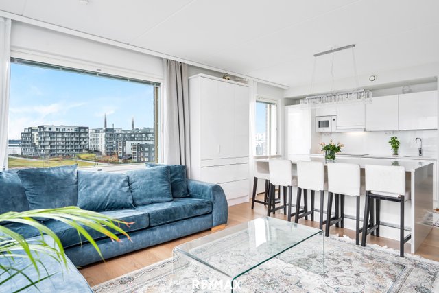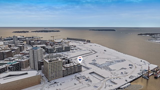 Asunnon sijainti Jätkäsaaressa on rauhallinen, mutta samalla keskeinen. Alueella on erinomaiset ulkoilu- ja harrastusmahdollisuudet, ja kaikki palvelut, kuten kaupat, ravintolat ja koulut, ovat käden ulottuvilla. Liikenneyhteydet ovat sujuvat, ja keskustaan pääsee nopeasti niin jalan, raitiovaunulla kuin sähköskuutilla. Oman elämänsä seikkailijoille on taloyhtiössä tarjolla myös yhteiskäytössä olevat kajakit; melomaan merelle pääset kätevästi aivan kotiovesi edessä kulkevaa kanavaa pitkin!