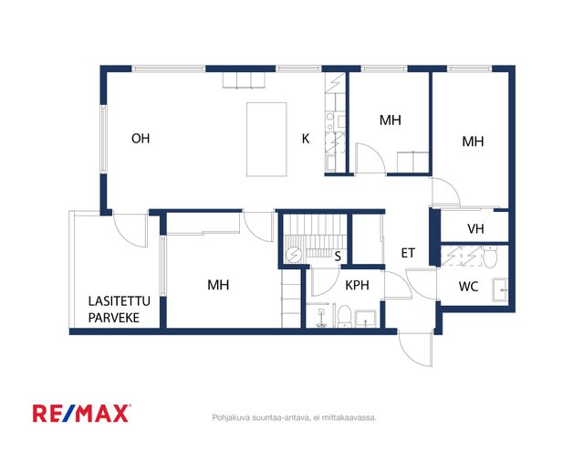 - Yhden makuuhuoneista yhteydessä on erillinen vaatehuone.
