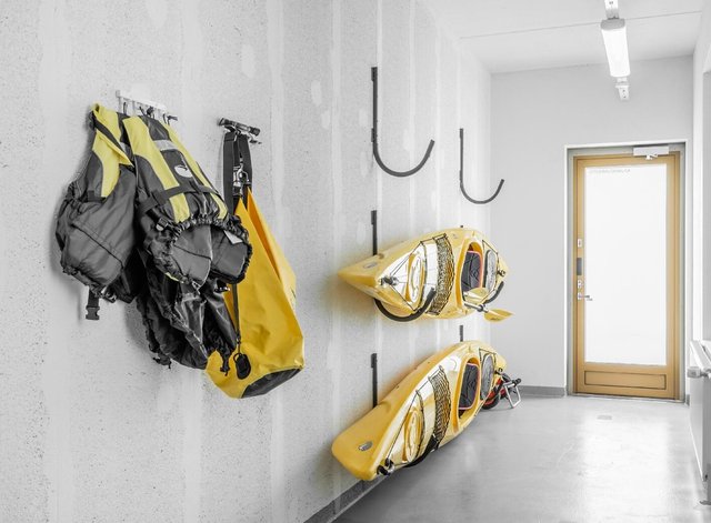 - Kuntosali, kerho-/etätyöhuone, väestönsuoja ja yhteiskäyttökajakit telineineen. Tilat ovat yhteiskäytössä As Oy Helsingin Goldfingerin kanssa lukuun ottamatta tekniset tilat ja irtainvarastot.