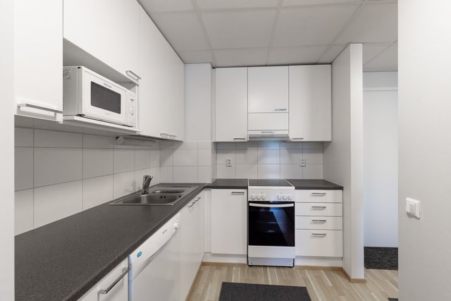 - Jääkaappipakastin, uuni, liesi, liesituuletin, ja astianpesukone