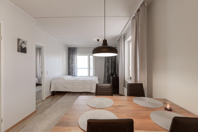 Asunnon avara pohjaratkaisu ja oma sauna tuovat mukavuutta arkeen. Lämmityksestä huolehtii energiatehokas kaukolämpö ja taloyhtiössä on laajakaista.