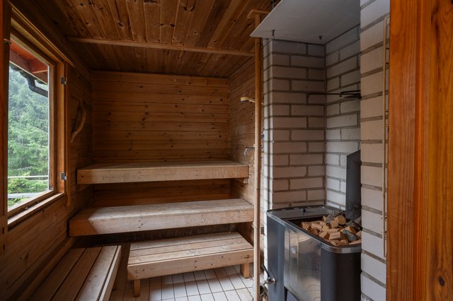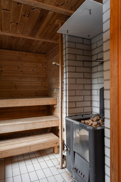 - Puusauna, jossa on pesumahdollisuus. LATTIA: laatta SEINÄT: puu