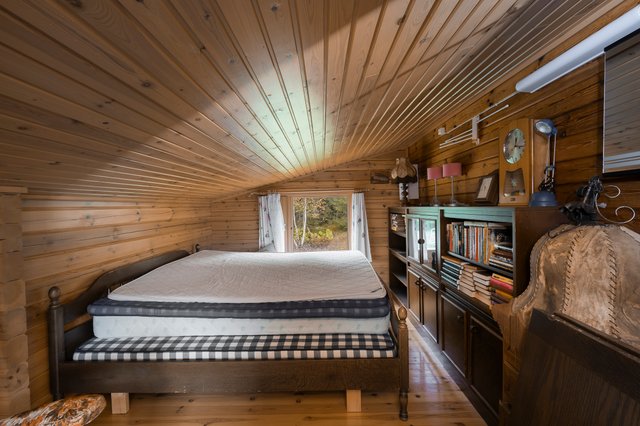 - Vapaa-ajan mökin makuuhuone on tilava. Erillisessä makuuaitassa on lisää makuutilaa.