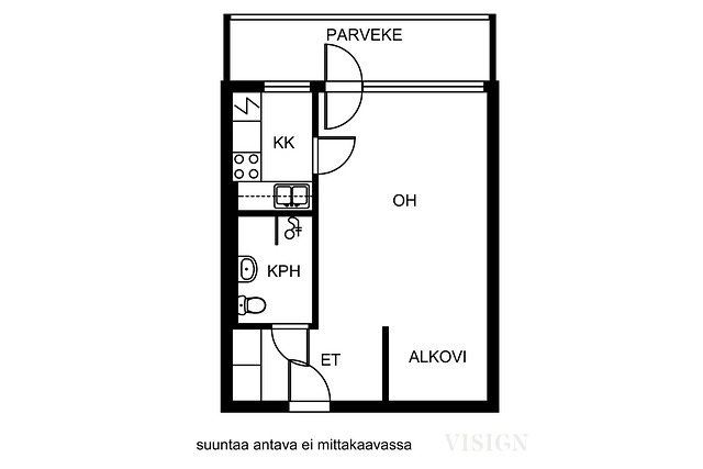 1h,alkovi,kk,kph,lasitettu parveke (yj.1h+kk+al)