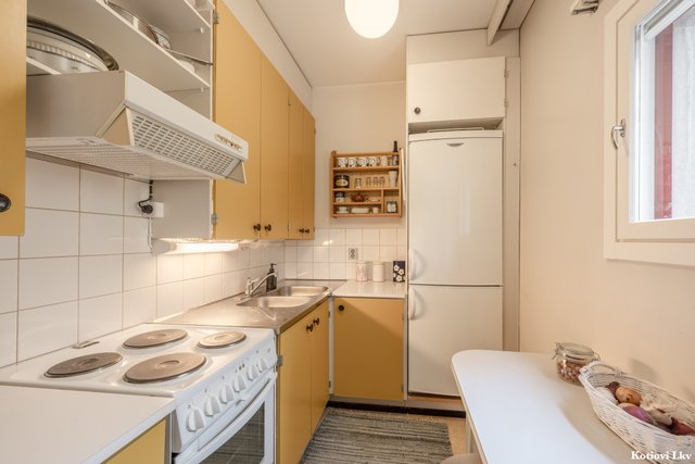 - Jääkaappipakastin, liesi, ja liesituuletin