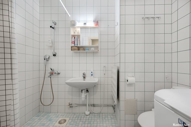 - WC-istuin, suihku, pesukoneliitäntä, peilikaappi, pesuallas, ja bidee-suihku