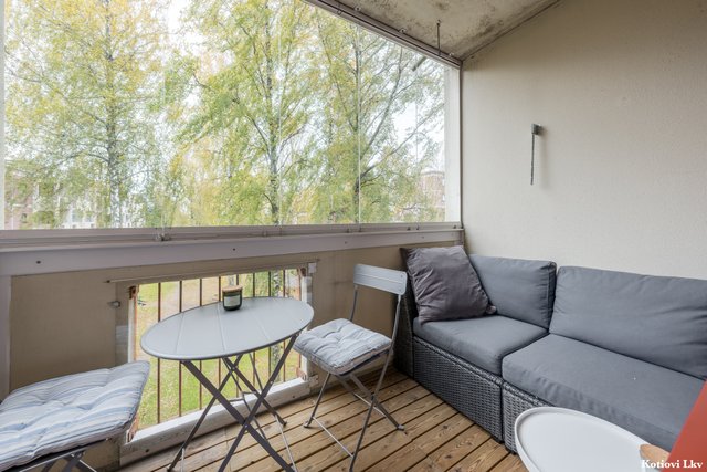 TOIMIVA PIKKUKOTI, JOSSA ON LASITETTU PARVEKE KAUNIILLE PIHALLE