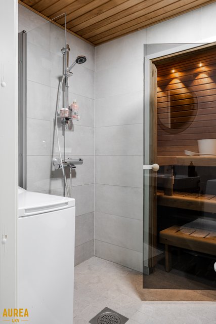 Kylpyhuone on remontoitu kokonaisuudessaan vuonna 2022, ja se hurmaa modernilla ilmeellään sekä laadukkailla materiaaleillaan. Oman saunan löylyt kruunaavat asumismukavuuden. Huoneistolle kuuluu autopaikka.