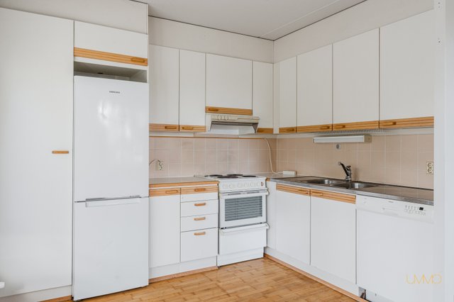 - Jääkaappipakastin, uuni, liesi, liesituuletin, ja astianpesukone