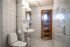 - WC-istuin, suihku, pesukoneliitäntä, peilikaappi, ja bidee-suihku